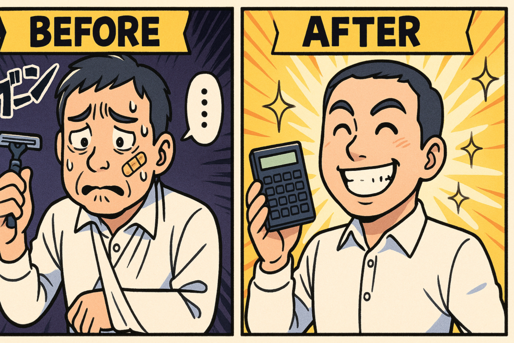元々は「毎朝のヒゲ剃りが面倒くさい」という理由だけで始めたのですが、その後、私が右肩の手術で利き手が使えなくなるという事態に陥ったとき、この投資が私の尊厳を救ってくれました。