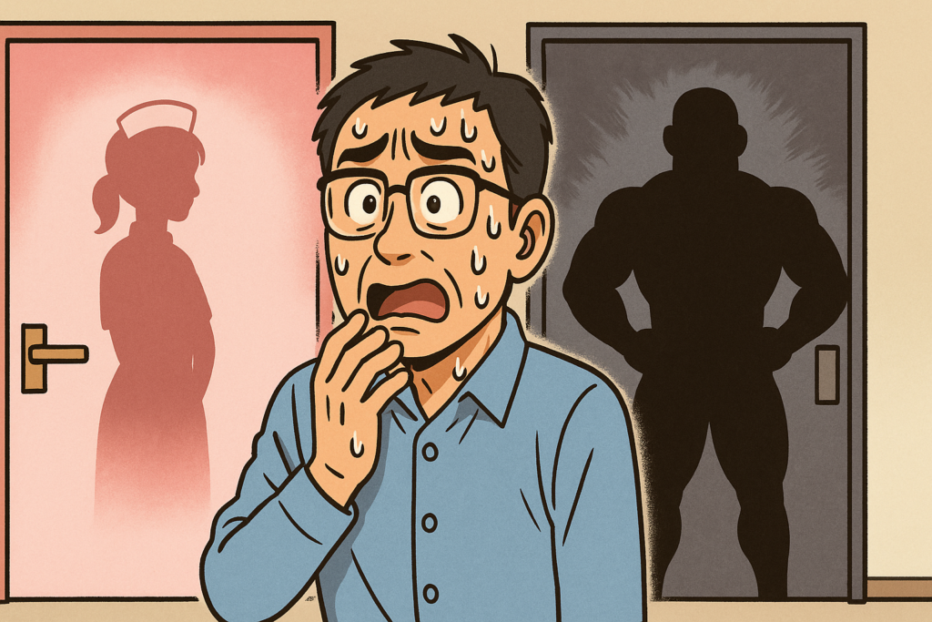 - 女に見られるのが精神的に無理 → ゴリラ(男性看護師)